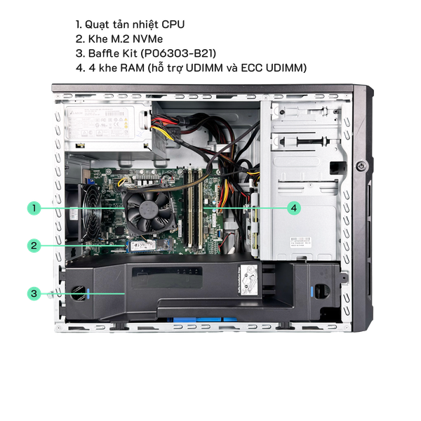HPE ProLiant ML30 Gen10 được trang bị bộ vi xử lý Intel Xeon E-2200 series, mang lại hiệu năng mạnh mẽ cho các ứng dụng kinh doanh quan trọng. Với khả năng hỗ trợ lên đến 64GB RAM DDR4 ECC, máy chủ này đảm bảo khả năng xử lý mượt mà và ổn định cho các tác vụ đa nhiệm.
