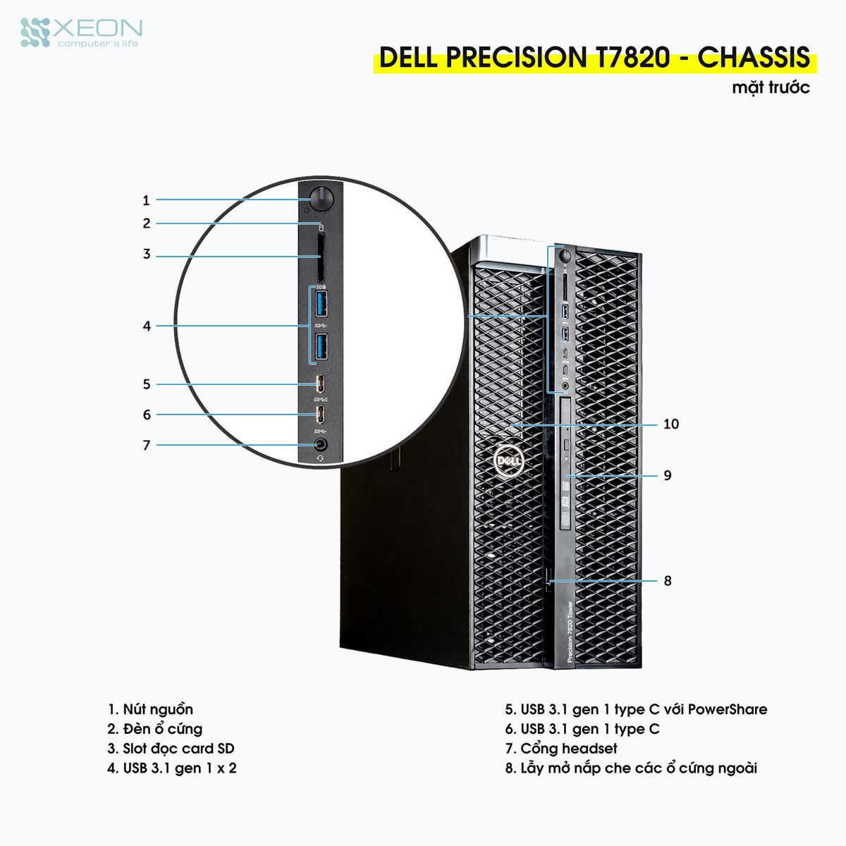 Dell Precision T7820 là sản phẩm mới - là dòng sản phẩm workstation chạy CPU Xeon mới nhất từ Dell (hãng vẫn còn đang sản xuất mới)