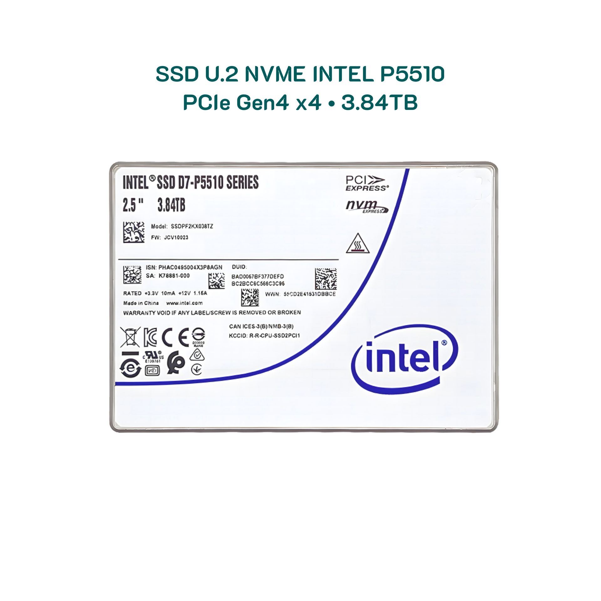 Ổ cứng 3.84TB Intel P5510 U.2 NVMe PCIe 4.0 x4 chuẩn Enterprise được mệnh danh là ổ TLC 144 lớp đầu tiên trên thế giới (đầu tiên có mặt trên thị trường) và là sản phẩm bổ sung mới nhất cho dòng ổ đĩa trung tâm dữ liệu của công ty, tập trung vào khối lượng công việc đám mây rộng với chi phí giảm. Có sẵn hệ số dạng U.2 ở hai mẫu (3,84TB và 7,68TB), P5510 sử dụng TLC NAND - được coi là best P/P (Price / Performance)