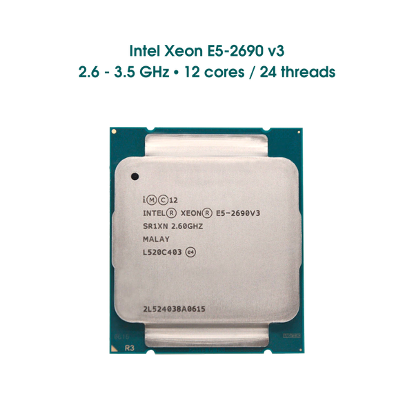 CPU Intel Xeon E5-2690 v3 là bộ xử lý Server cao cấp phát hành năm 2014 với 12 lõi và 24 luồng. Với xung nhịp cơ bản là 2,6 GHz, tốc độ tối đa ở 3,5 GHz và mức công suất 135W. Xeon E5-2690 V3 dựa trên quy trình Haswell-EP 22nm và là một phần của dòng Xeon E5.