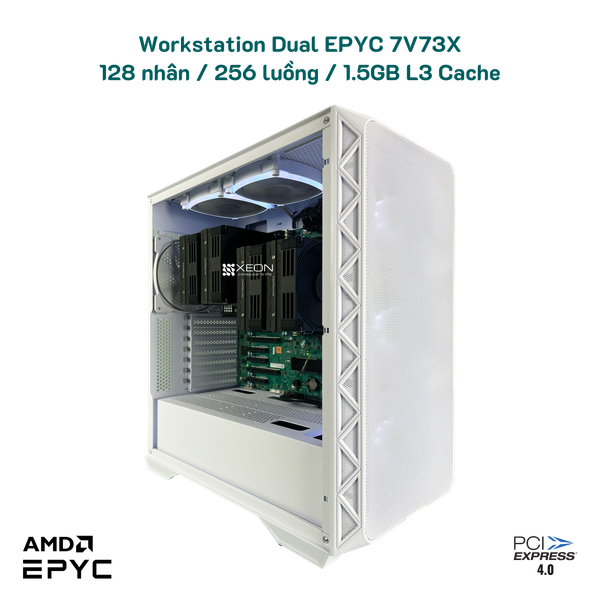 Siêu Workstation Dual Epyc Milan-X 128 nhân / 256 luồng / turbo 3.3 GHz / 1.5 GB cache