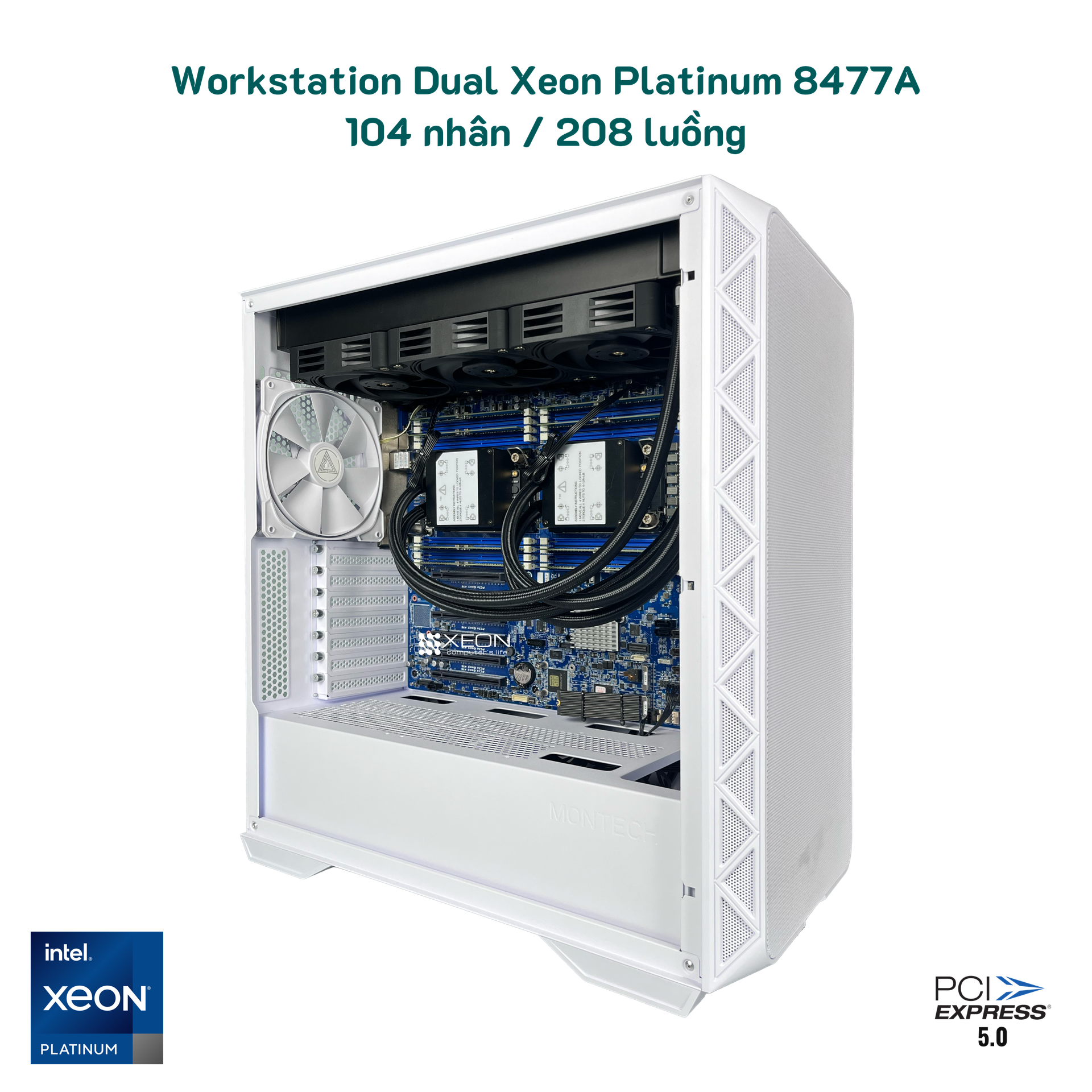 CPU: 2 x Intel Xeon Platinum 8477A – Tổng cộng 104 nhân / 208 luồng, xung cao, phù hợp cho AI, Render, ảo hóa, phân tích dữ liệu lớn.