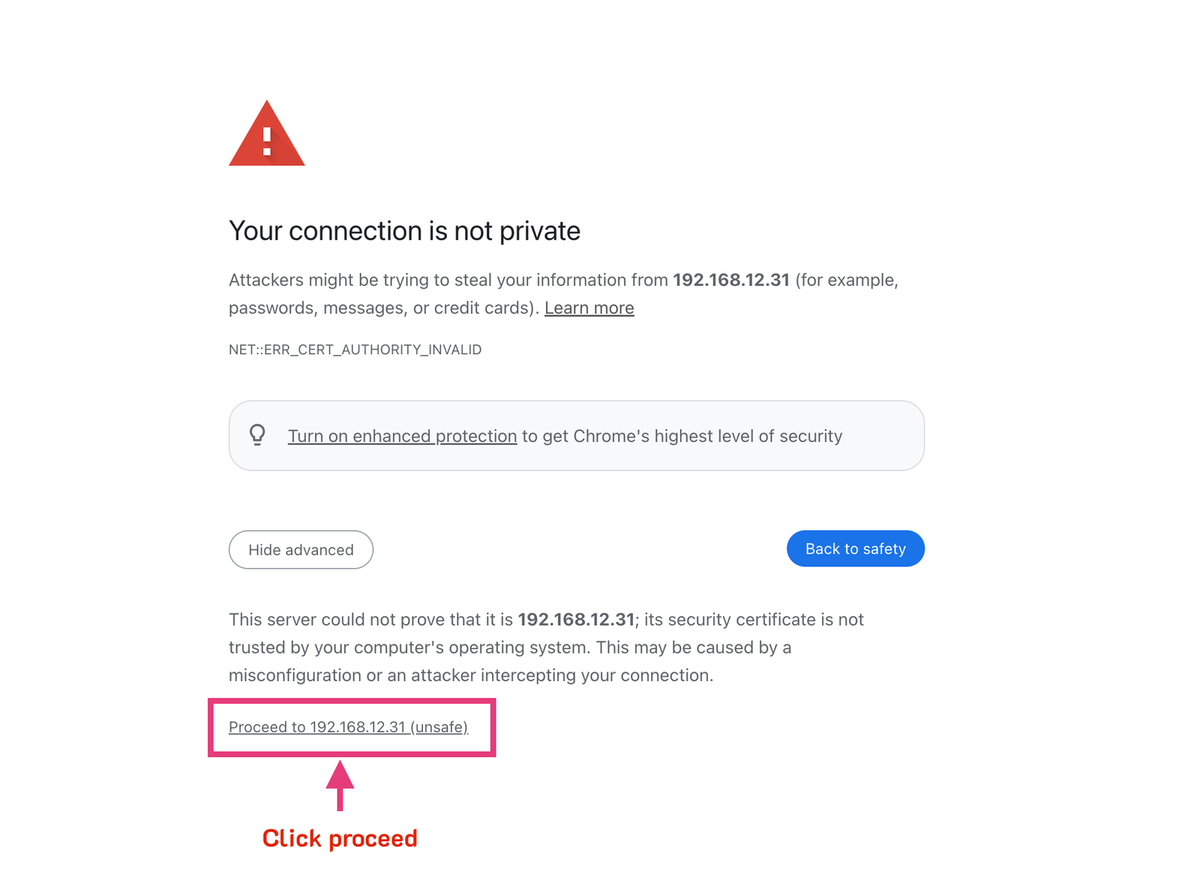 Mở trình duyệt, nhập static IP, username và password theo các bước sau
