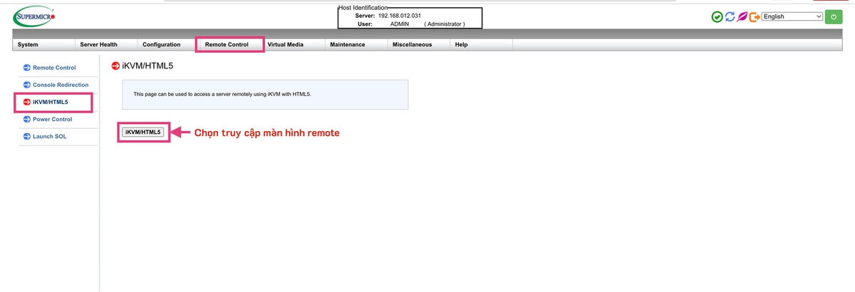 Đối với Supermicro, username thường là ADMIN (mặc định)