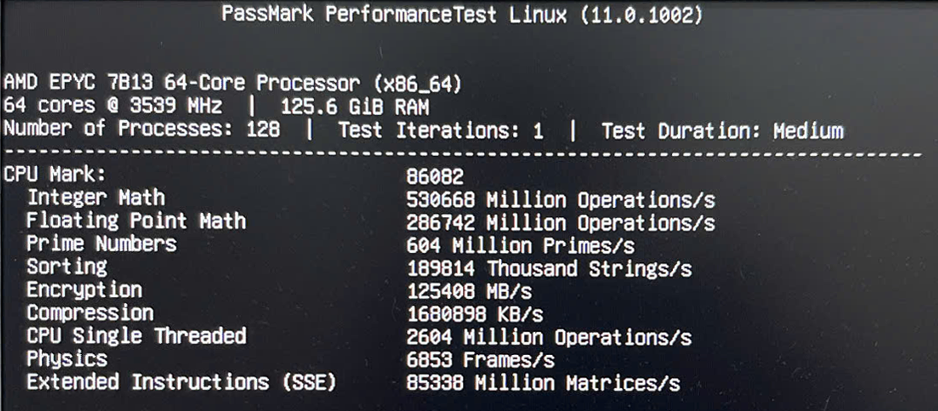 Single 7B13 passmark CPU on Ubuntu OS