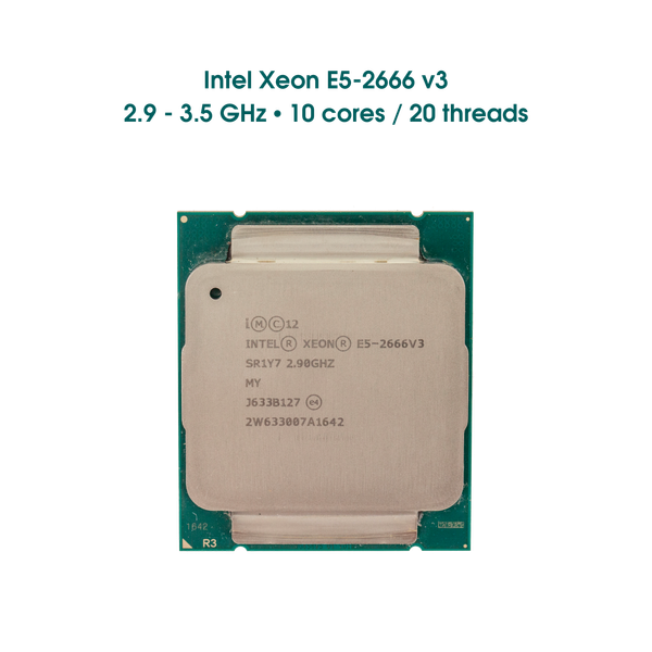 Intel Xeon E5-2666 v3 - Bộ vi xử lý 10 nhân với xung nhịp 2900 MHz và bộ nhớ đệm cấp 3 25600 KB. Bộ xử lý được thiết kế cho máy chủ, cài đặt trong LGA2011-3. Có bộ điều khiển bộ nhớ tích hợp (4 kênh, DDR4) và bộ điều khiển PCI Express 3.0 (40 dòng).