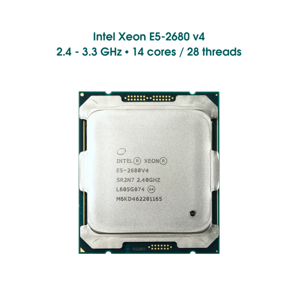 CPU Intel Xeon E5 2680 V4 tỏa sáng với số lượng nhân và luồng khủng: 14 nhân và 24 luồng -- sinh ra để phục vụ cho nhu cầu render, tính toán cao độ.