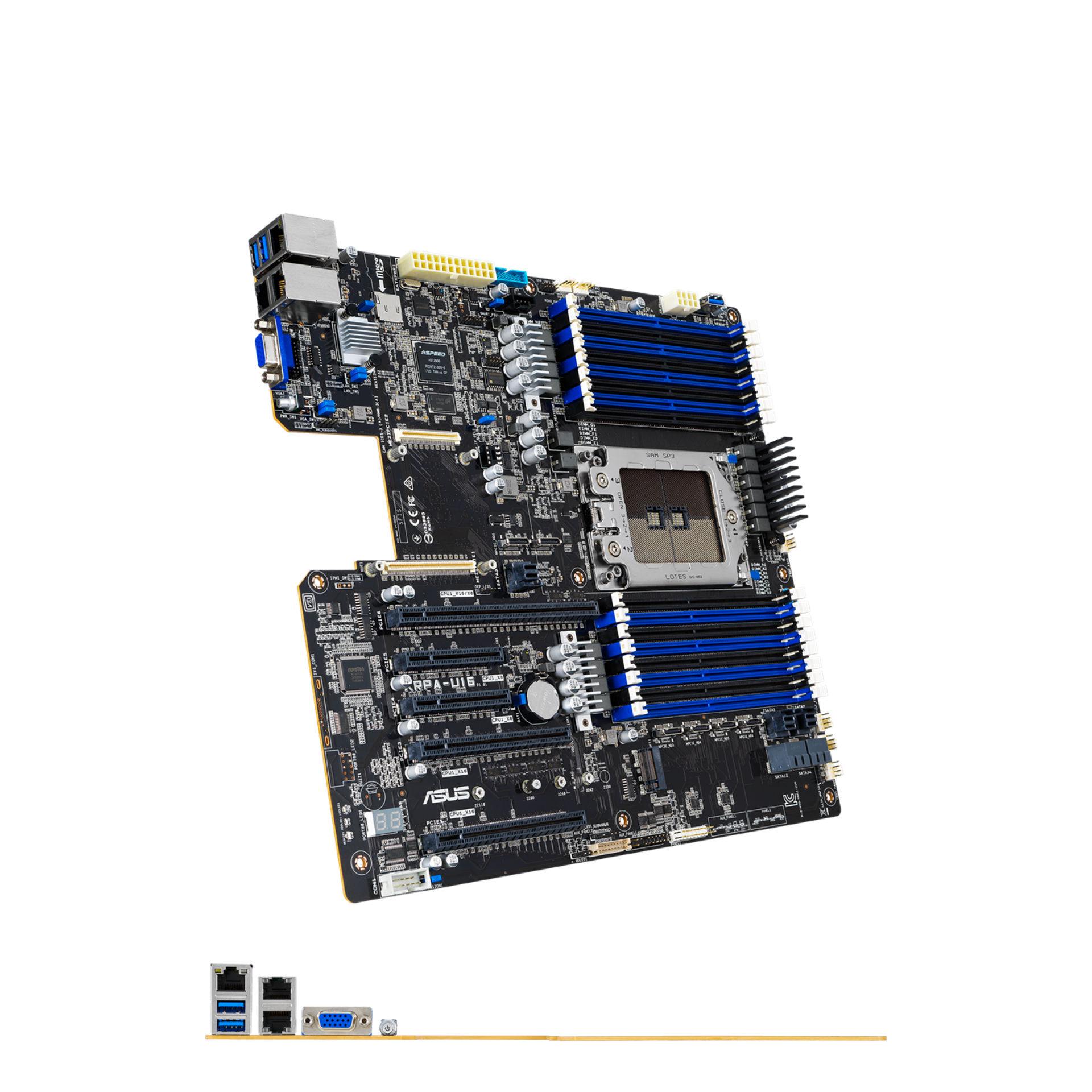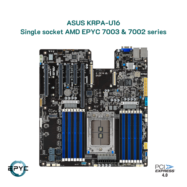 Mainboard ASUS KRPA U-16 hỗ trợ CPU AMD EPYC 7003 & 7002 với 2TB RAM trên 8 kênh DDR4 3200 MHz, PCIe 4.0, M.2, NVMe, SAS, SATA, OCP 2.0 Mezzanine card, mạng LAN kép và Trung tâm điều khiển ASUS