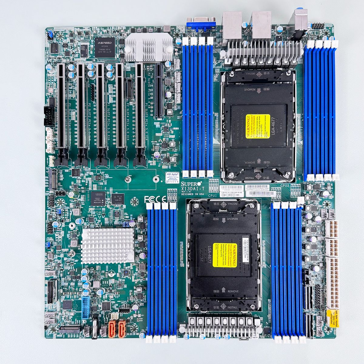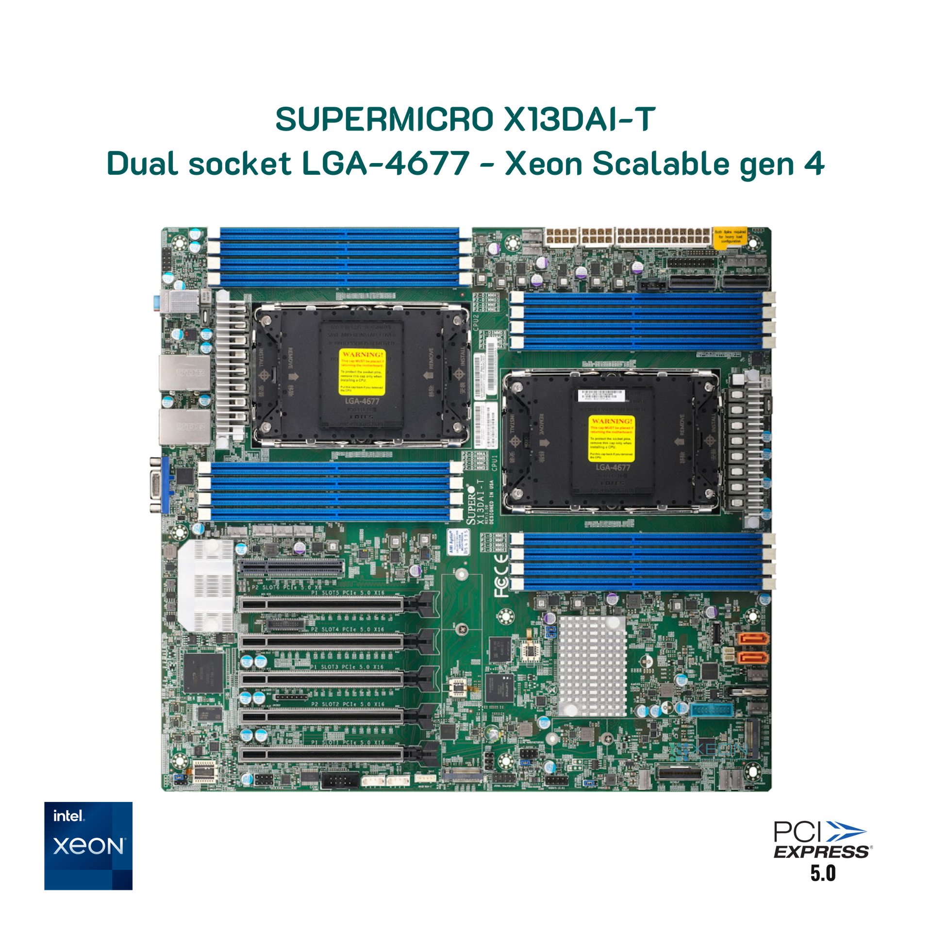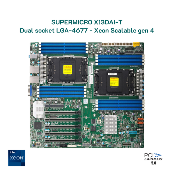 Supermicro X13DAI-T hỗ trợ Intel Xeon Scalable thế hệ thứ 5 và 4 (trong socket LGA 4677), tối đa 64 nhân CPU và TDP lên tới 350 W.