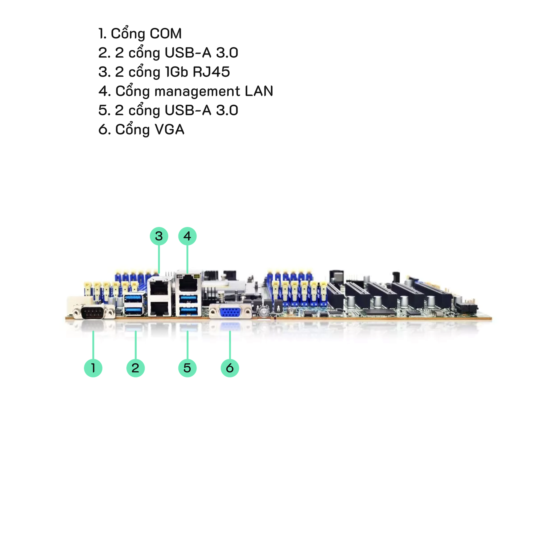 1 COM, 4 x USB 3.0, 1 x 1Gb RJ45 management port, 2 x 1Gb RJ45 data network ports, 1 VGA, 1 UID (button & indicator)